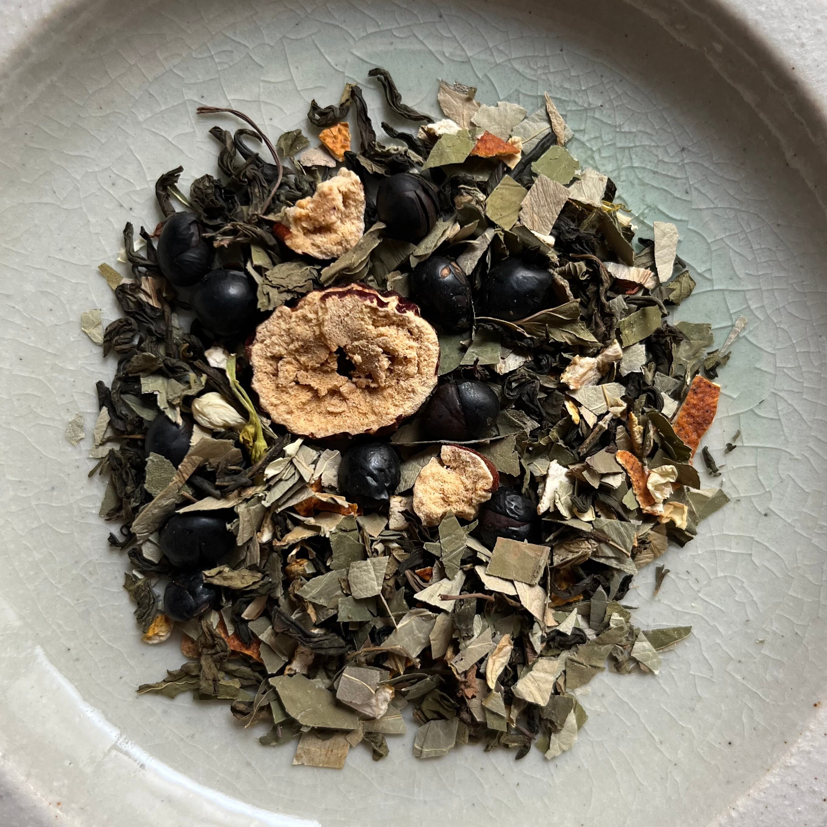 夏に影響する五臓の「心」を健やかにしてイライラを解消し精神を落ち着かせてくれるジャスミン茶に、身体の熱を取り除く荷葉(ハスの花)や薄荷を合わせて、リラックス効果のある爽やかな味わいに仕上げました。